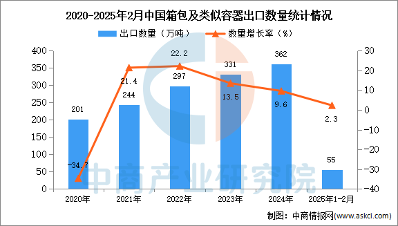 中商谍报网讯:据中商财产研究院数据库显示,2024年我国箱包及雷同容器出口量362万吨,同比增加9。6%。最新数据显示,同比增加2。3%。